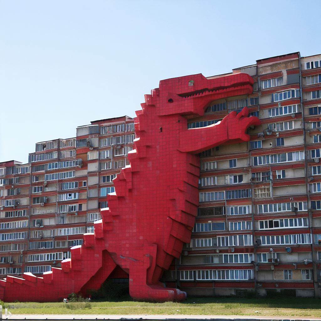 А как ли би изглеждал един червен крокодил, вграден в панелния блок: