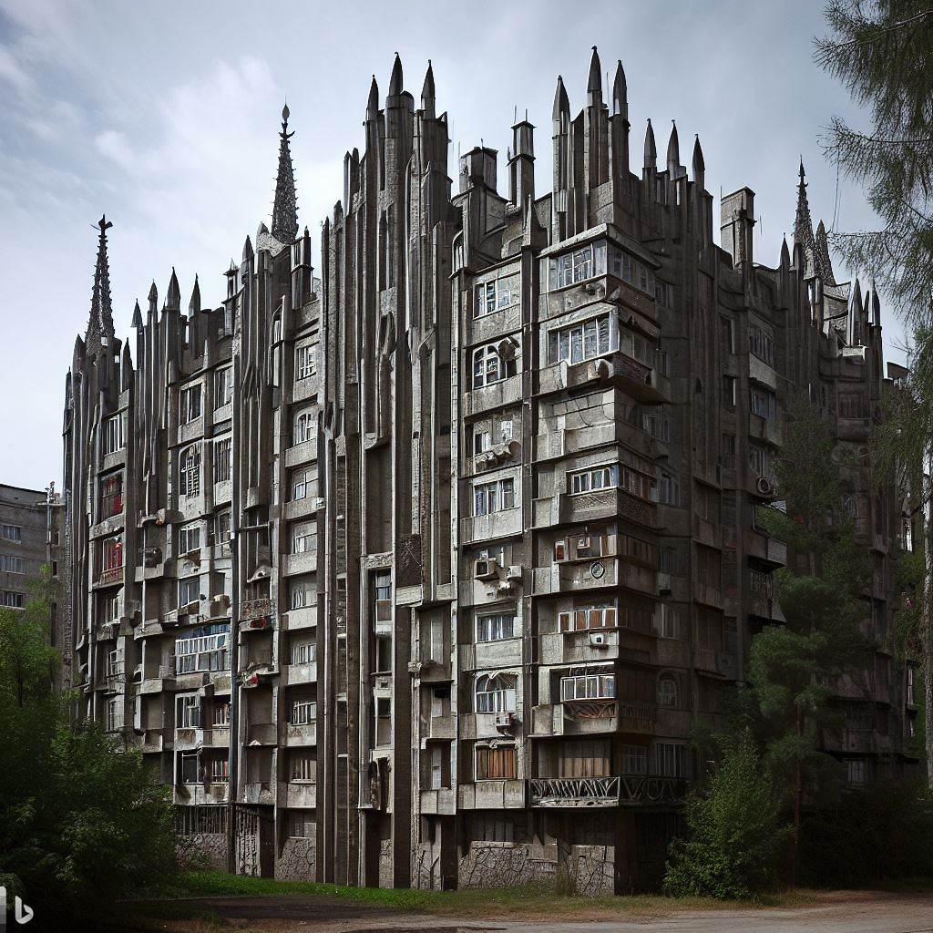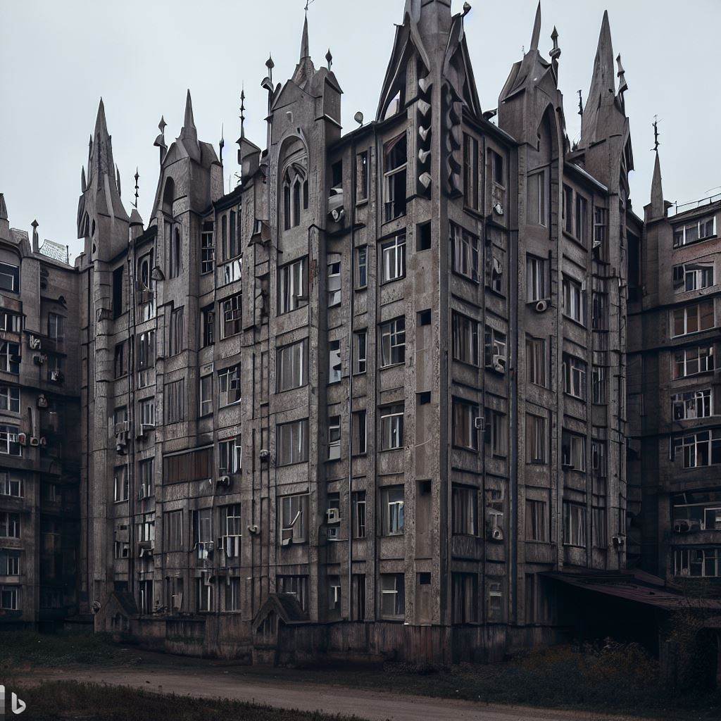 Панелните блокове по принцип са мрачни и потискащи, защо да не ги направим още по мрачни, добавяйки готически нюанс: